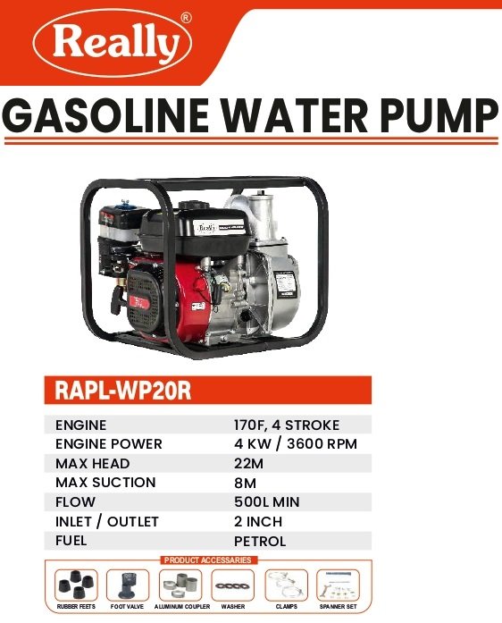💧 Really RAPL-WP20-R – 6.5 HP 2-Inch Petrol Water Pump (With Accessories)